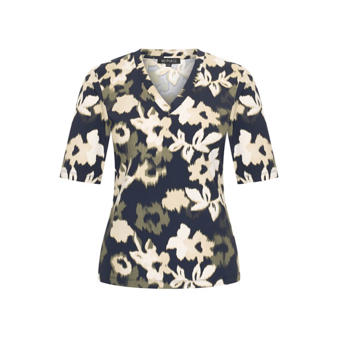Travel Top flowers print 2271 Off White Dark Blue